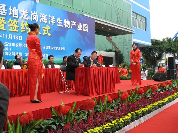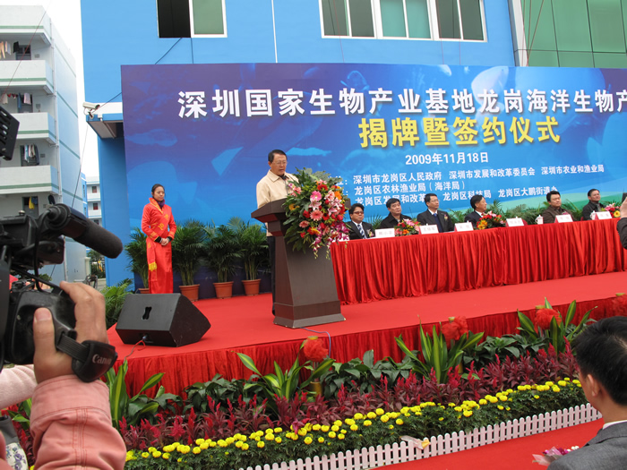 2009年11月18日,深圳國家生物產(chǎn)業(yè)基地龍崗海洋生物產(chǎn)業(yè)園揭牌暨項目簽約儀式在園內(nèi)隆重舉行,中科院院士倪嘉纘,美國工程院院士王兆凱,深圳市副市長李銘,龍崗區(qū)區(qū)長張備、副區(qū)長熊小平等參加了揭牌和簽約儀式