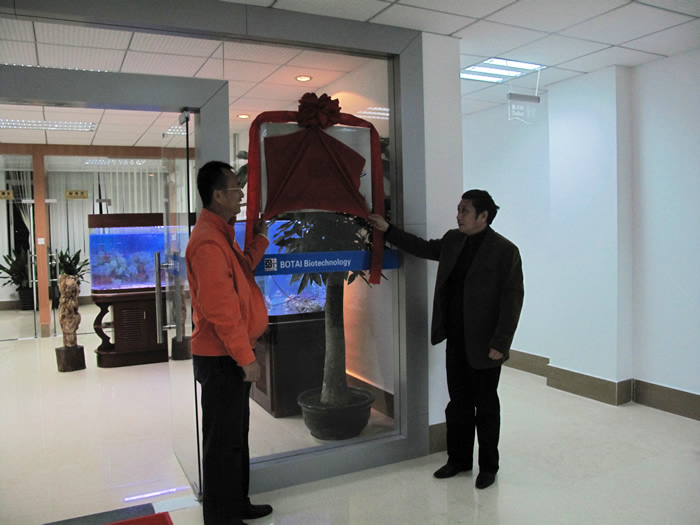同一天,深博泰生物科技有限公司深圳公司在新落成的產(chǎn)業(yè)園內(nèi)盛大開張,公司董事長王榮輝及賈教授出席了剪彩儀式并為深博泰深圳公司揭牌剪彩。龍崗電視臺、深圳僑報等多家媒體到場報道并專訪了王榮輝董事長,王董事長向新聞媒體介紹了公司的相關情況并表示對龍崗海洋生物產(chǎn)業(yè)園及深博泰深圳公司的前景充滿信心。