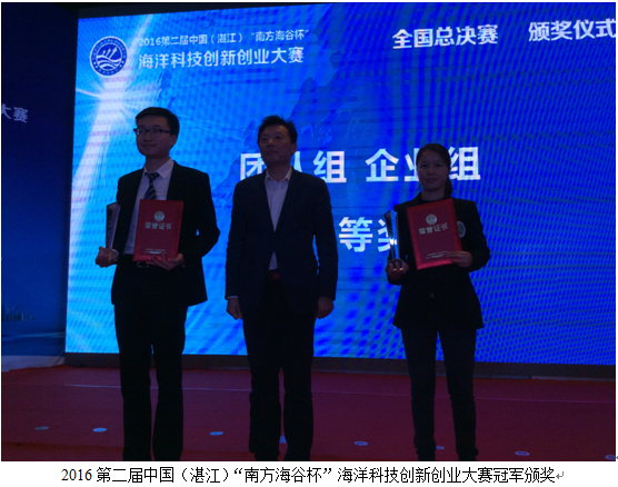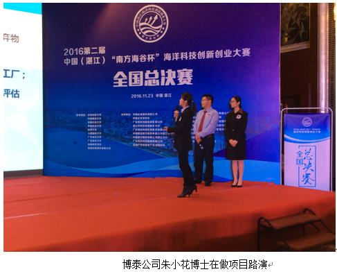 熱烈祝賀博泰公司榮獲2016第二屆中國(湛江)“南方海谷杯”海洋科技創(chuàng)新創(chuàng)業(yè)大賽冠軍